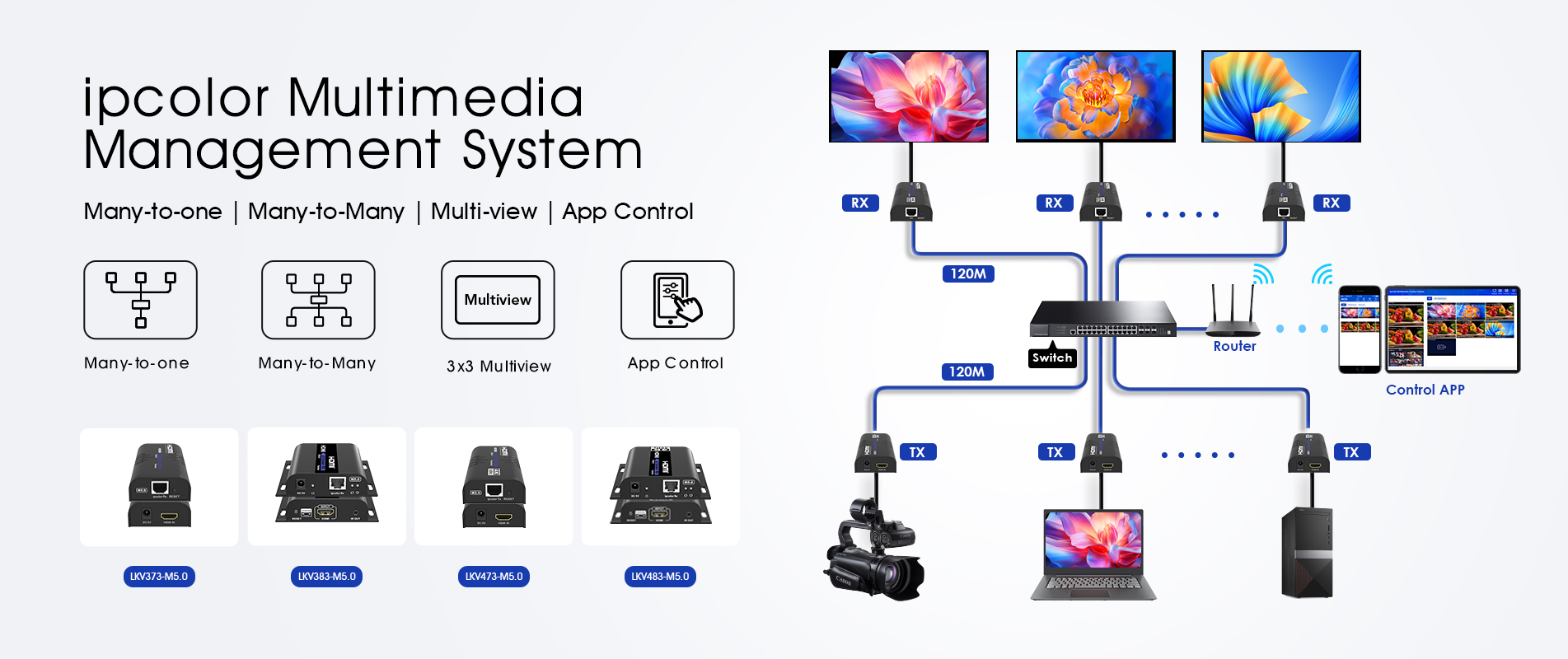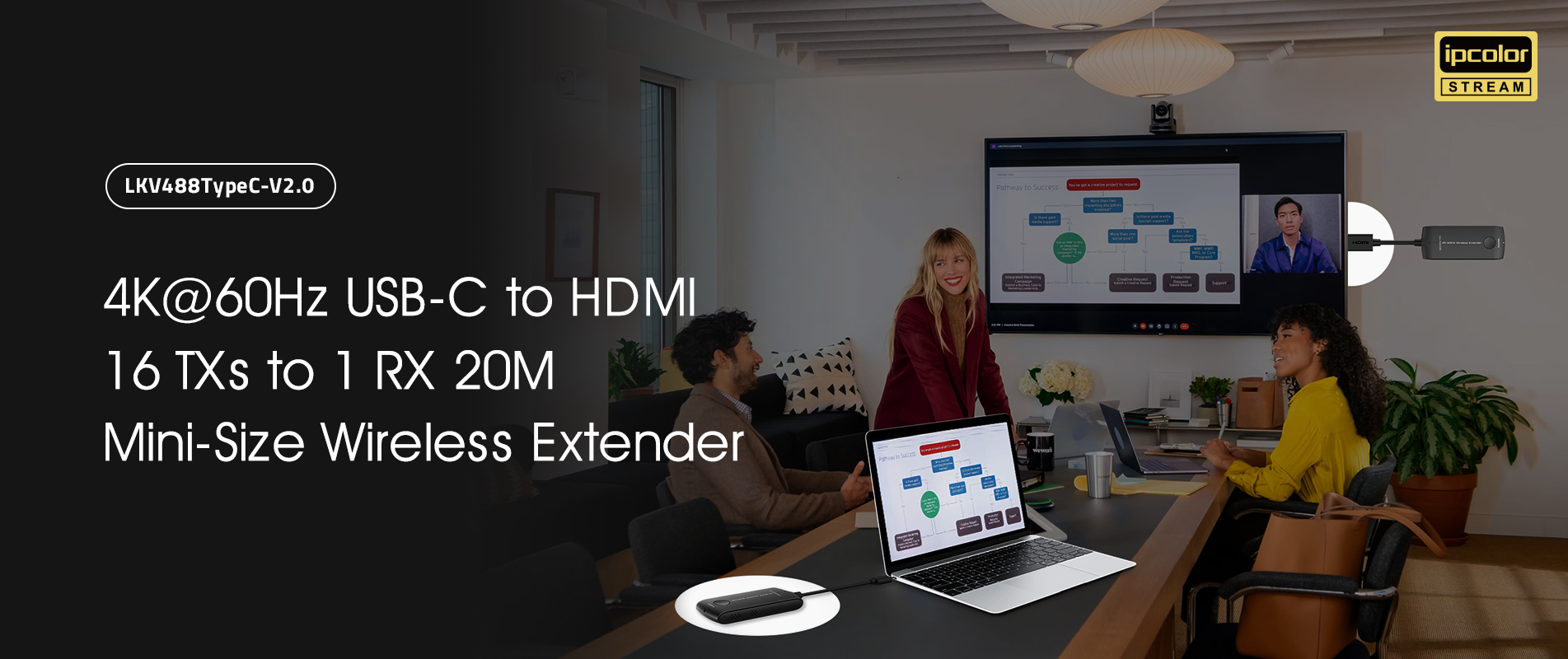 Seamless Integration and Unmatched Simplicity for Mobile Devices with Andoird and IOS System for Next-Gen AV-over-IP Workflows. Ultra-Low Latency Wireless Extender with Exclusive ipcolor IMAGE Visually Lossless Solution.