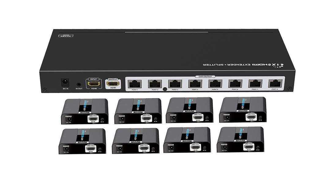extender receivers to distribute and extend 1 HDMI source to 8 HDMI